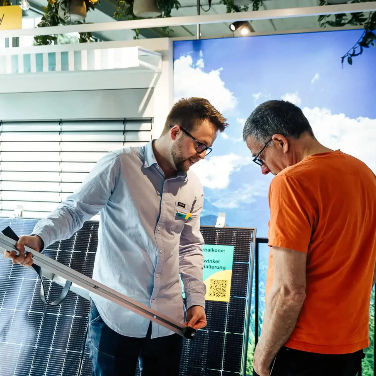 Ungenaue Prognosen, geschönter Eigenverbrauch und enttäuschende Versprechen bei der Balkonsolar-Planung? Ertragsrechner werben häufig mit unrealistischen Werten. Weil das nicht unser Anspruch ist, sind aktuelle Daten aus offiziellen internationalen Quellen die Basis des Yuma-Strom-Spar-Checks.Entdecke im Handumdrehen, wie du dein Solar-Potenzial voll ausschöpft – ohne die Fallstricke von statischen Standardwerten und ungenauen Quellen. Werte eingeben und sofort sehen, was für dich drin sein kann. Jetzt ausprobieren und die Sonnenseite des Sparens entdecken!Die Module der Balcony-Reihe werden mit der mitgelieferten Halterung am Gitter des Balkons befestigt. Die Panele werden dabei entweder auf einer 90 Grad-Halterung ohne Aufständerung oder einer Halterung mit Aufständerung montiert. Letztere ermöglicht eine flexible Ausrichtung des Moduls über individuell einstellbare Neigungswinkel, um den Stromertrag zu optimieren. Über die Solarstromproduktion hinaus dienen die Module für den Balkon dem Sichtschutz.